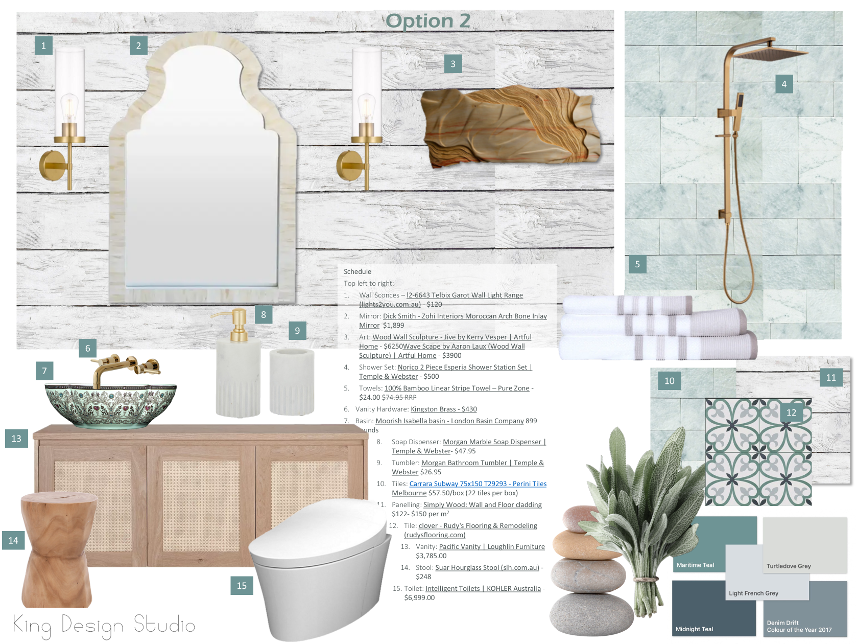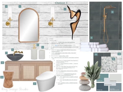 - 2 Design Sample Boards – includes links and costings for all design samples